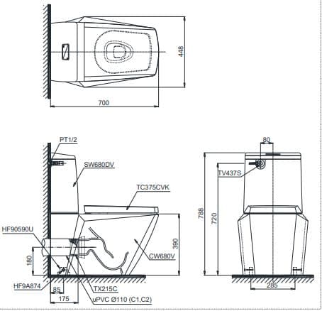 - Sản phẩm gồm: Thân cầu C680, Két nước S680D , nắp TC375CVK