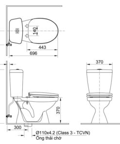 Bản vẽ kỹ thuật dùng để lắp đặt cho Bồn Cầu Inax 108va