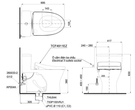 - Xuất xứ: Việt Nam , nắp rửa điện tử TCF4911EZ – Malaysia