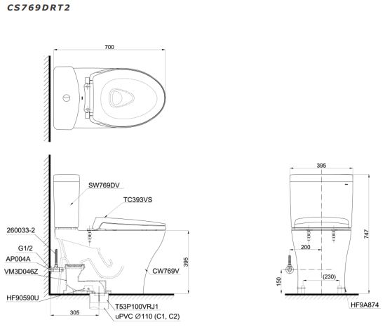 Bàn Cầu TOTO 2 Khối CS769DRT2 Nắp Đóng Êm Bàn Cầu TOTO 2 Khối CS769DRT2 Nắp Đóng Êm