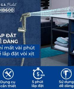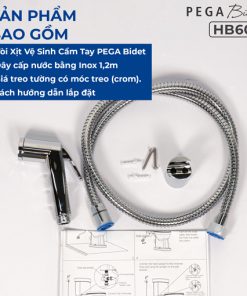 Bộ vòi xịt vệ sinh áp lực mạnh PEGA Bidet HB600, Dây Cấp Nước Dài 1.2M Inox 304, Đầu Vòi Xịt Và Giá Treo Mạ Crom