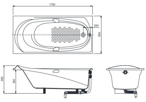Bản vẽ Bồn Tắm TOTO PPY1710PE#P/DB501R-2B Ngọc Trai