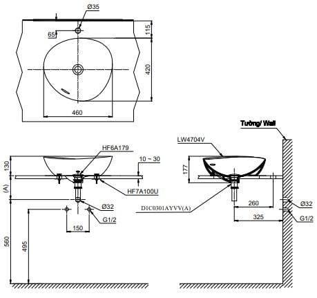 Bản vẽ kỹ thuật Chậu Rửa Lavabo Đặt Trên Bàn TOTO LT4704G17