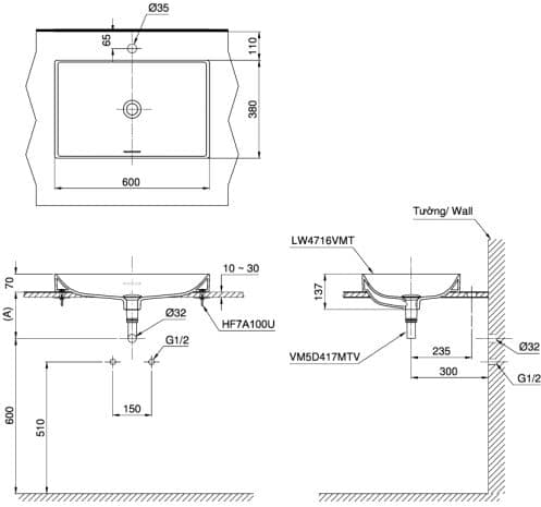 - Đường kính lỗ bắt vòi: Ø35 (mm)