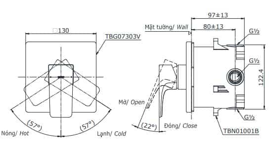 Bản vẽ Van Điều Chỉnh Nóng Lạnh TOTO TBG07303V/TBN01001B