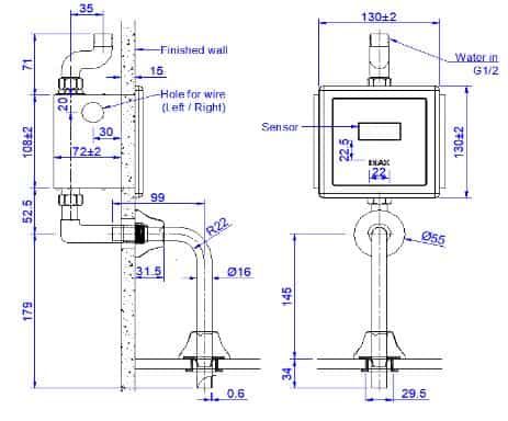 Bản vẽ Van Xả Bồn Tiểu Cảm Ứng INAX OKUV-30SM