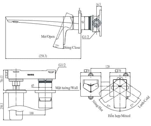 Vòi Lavabo TOTO TLG07308B Nóng Lạnh Gắn Tường Vòi Lavabo TOTO TLG07308B Nóng Lạnh Gắn Tường