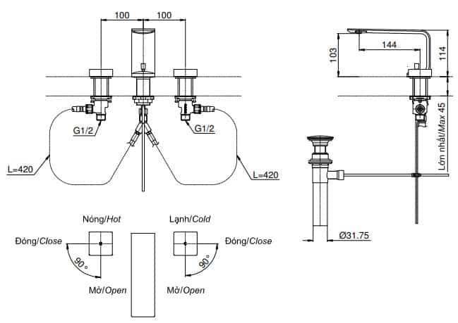 - Bao gồm bộ xả, không gồm ống thải chữ P