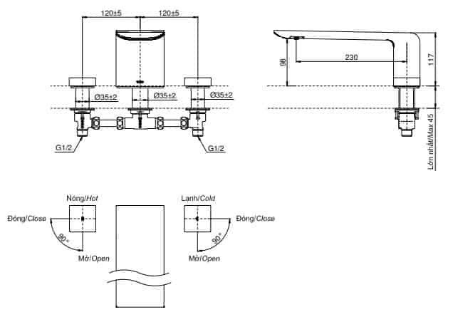 - Áp suất nước: 0,05 ~ 1,0 MPa
