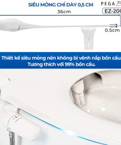 Vòi xịt rửa vệ sinh thông minh PEGA Bidet EZ-200R gắn bồn cầu thế hệ mới siêu mỏng, 2 vòi phun, tay phải